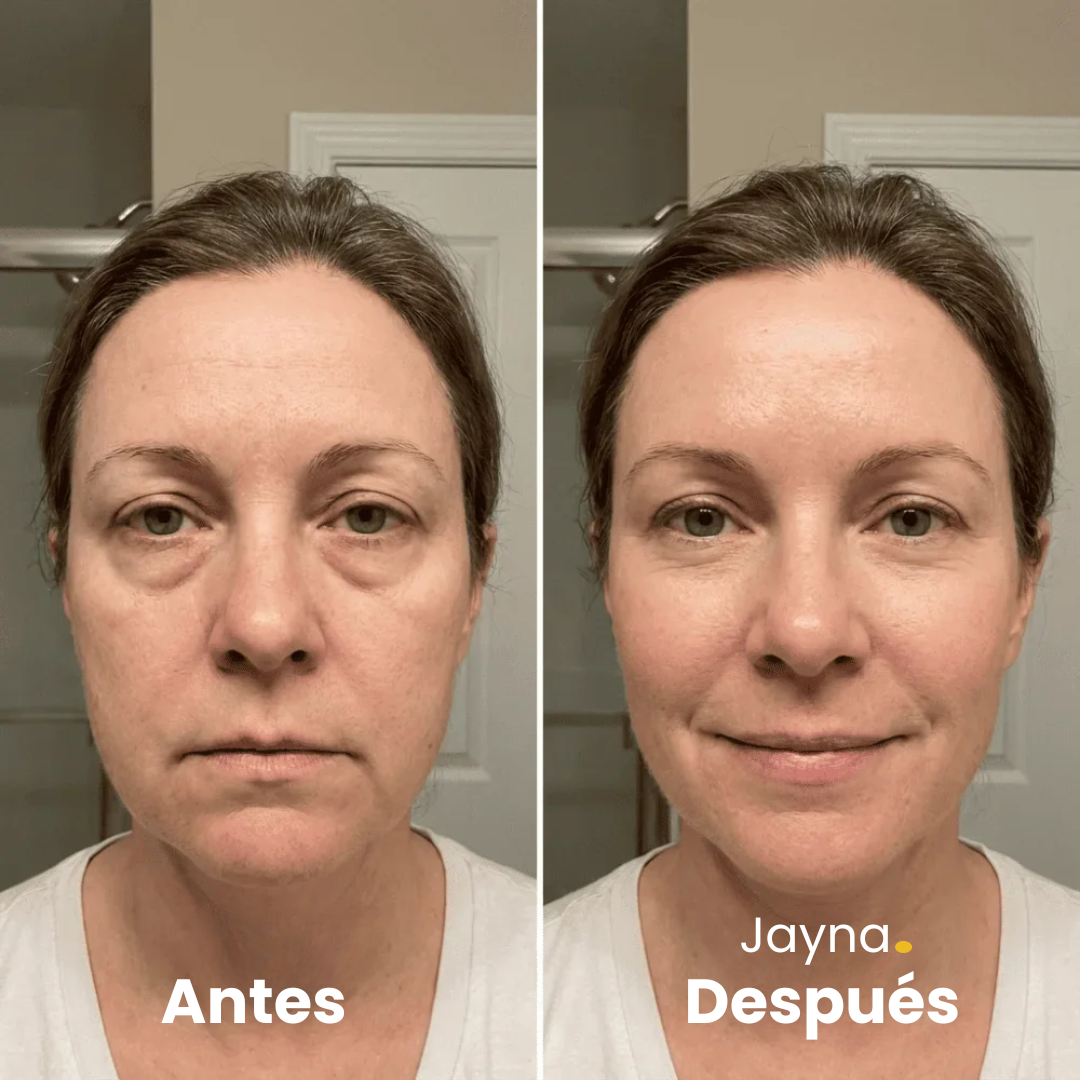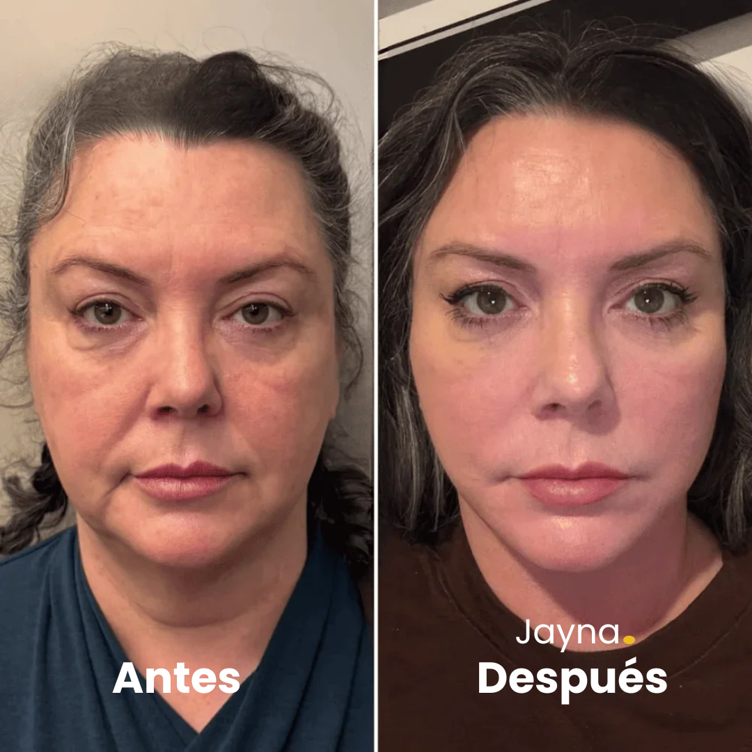 Contornos del rostro más definidos, óvalo facial redefinido, bolsas bajo los ojos reducidas y tono de piel más luminoso.