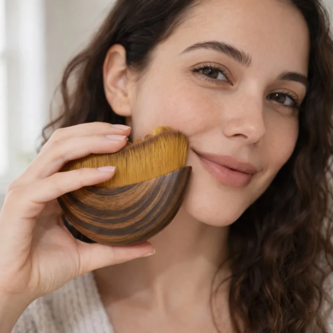 - Pasa el cepillo en seco con movimientos suaves por el rostro